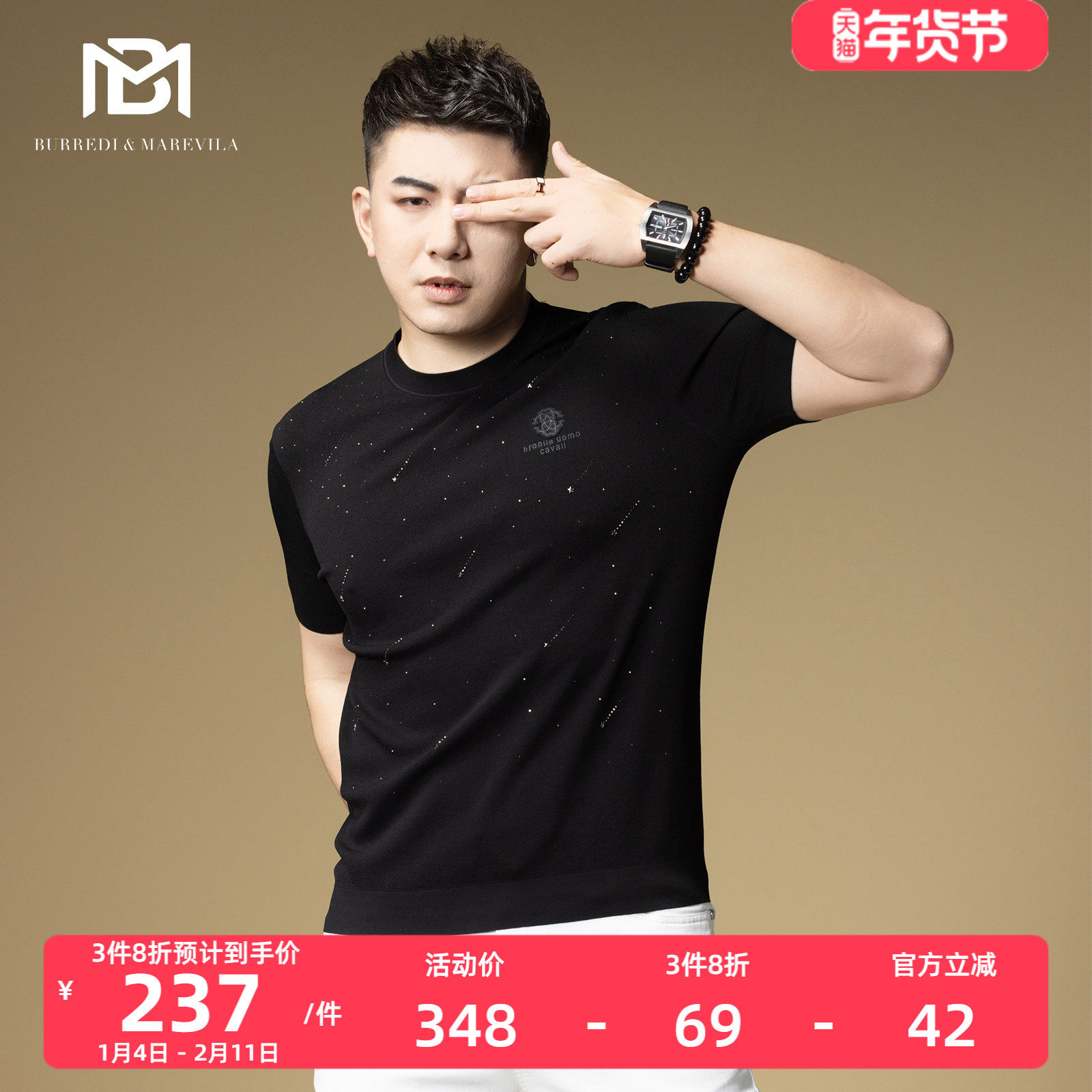 BM流星烫钻高端t恤男针织短袖2024新款男士休闲上衣圆领修身夏季