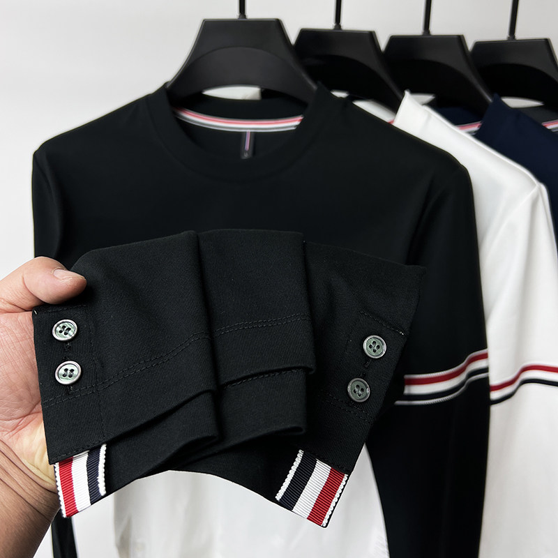 (下摆开叉)高端t恤男长袖圆领索罗娜春秋季薄款男装打底衫体恤