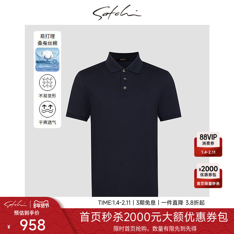 [桑蚕丝棉]SATCHI沙驰男装男士短袖POLO衫夏季新款商务高端T恤男