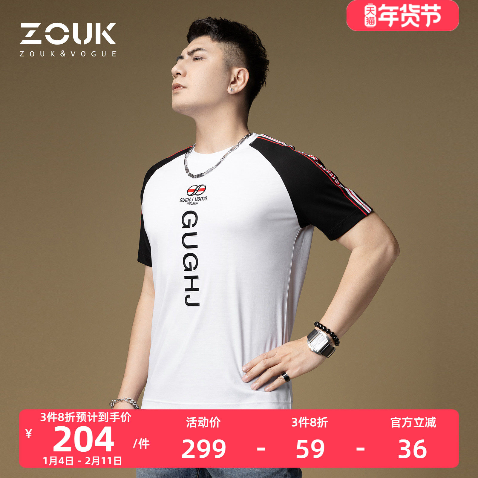 ZOUK莫代尔高端t恤男撞色插肩短袖2024新款男士休闲上衣潮牌体恤