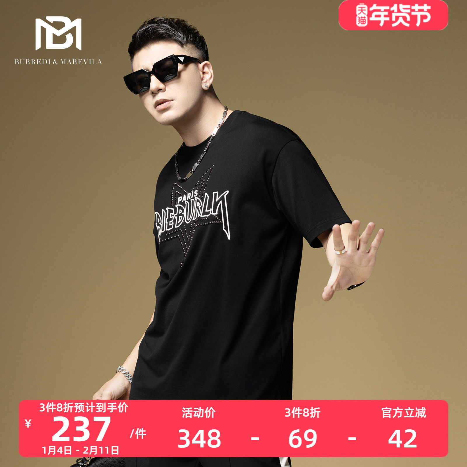 BM欧货高端t恤男刺绣字母钉珠宽松短袖2024新款男纯棉圆领上衣夏
