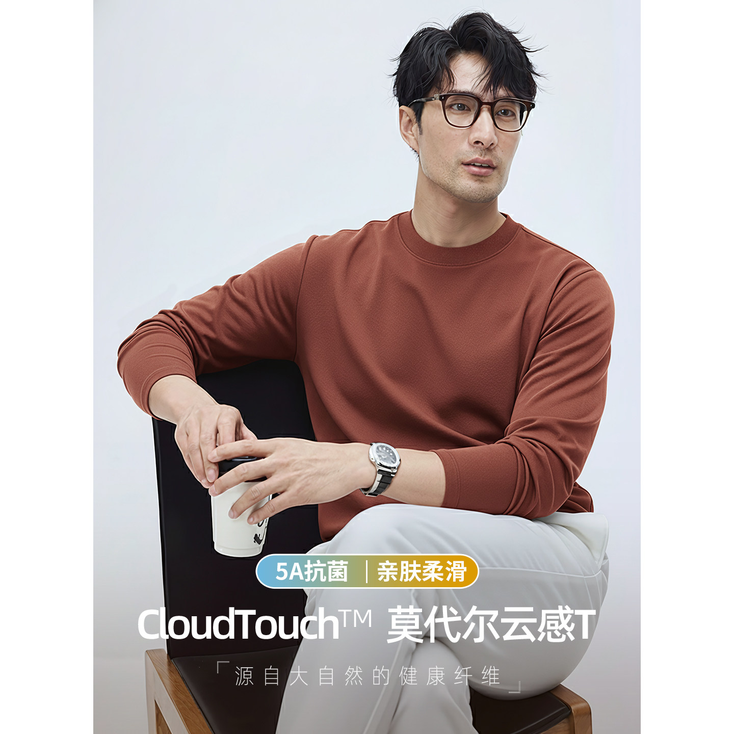 【云感亲肤】CloudTouch™莫代尔高端T恤男长袖抗菌高级感打底衫