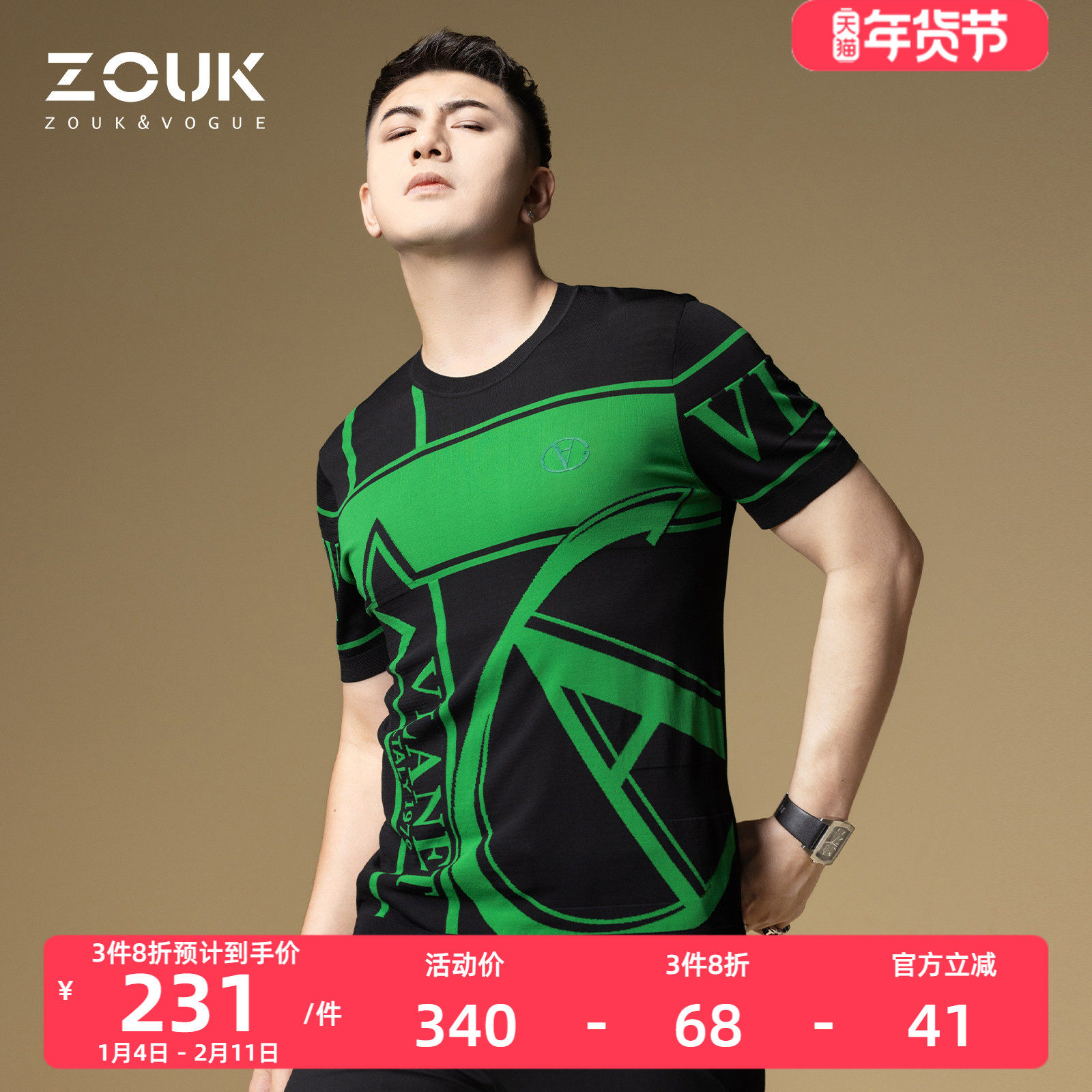 ZOUK高端t恤男时尚字母提花针织短袖2024新款轻奢男装潮牌体恤夏
