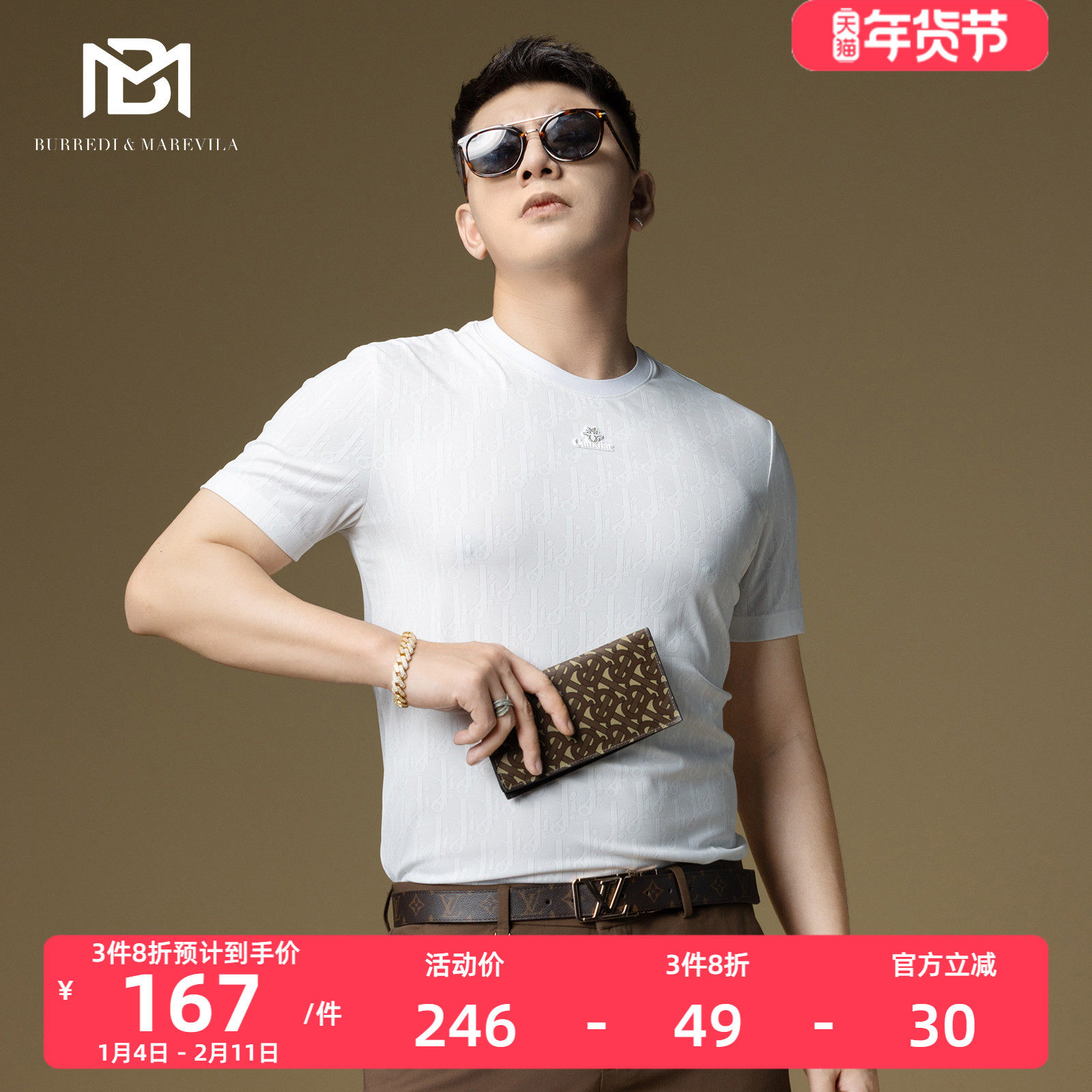 BM高端t恤男字母提花暗纹短袖2024新款男士休闲上衣潮流修身夏季