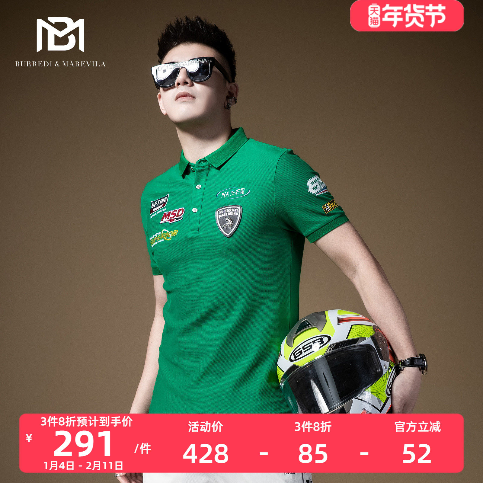 BM欧洲站男士时尚高端t恤男短袖2021新款车手徽章刺绣polo衫潮牌