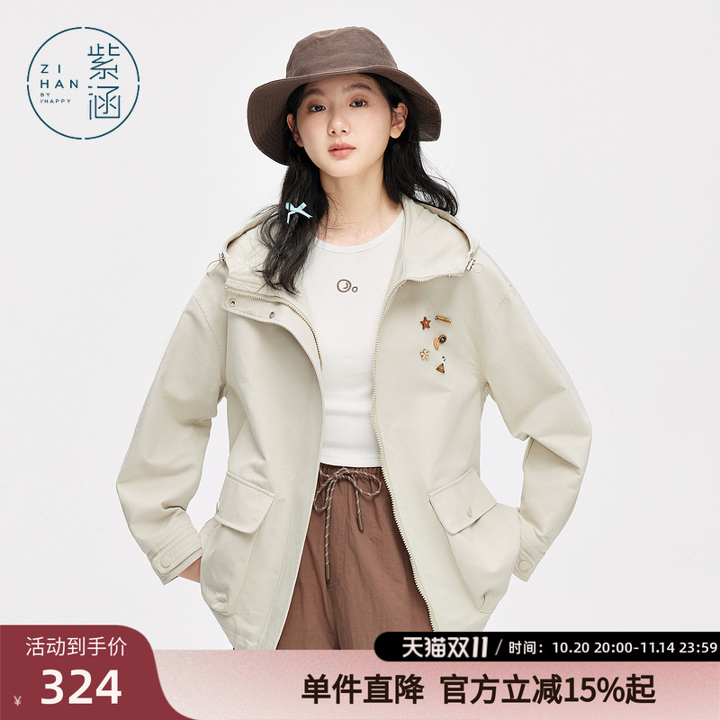 IHIMI海谧秋季连帽短款风衣女士2025春秋新款宽松今年流行外套女