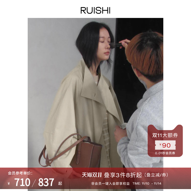 RUISHI芮时 立领挺括定制一粒扣廓形短长款百搭风衣外套女春秋