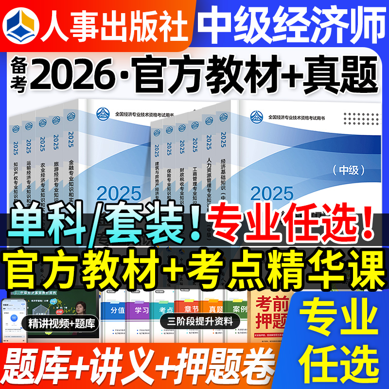 2026年中级经济师官方教材人力资源工商管理金融财政税收建筑与房地产财税知识产权农业运输经济旅游保险基础26历年真题库试卷2025