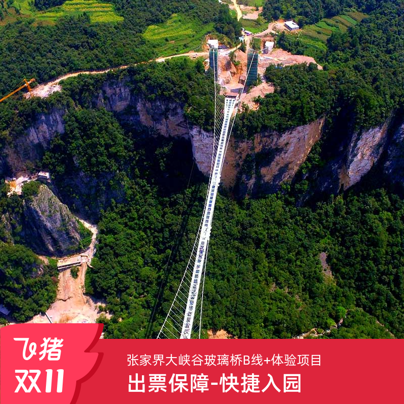 [张家界大峡谷玻璃桥-B线大峡谷+玻璃桥+体验项目(含保险)]张家界旅游大峡谷玻璃桥含体验项目