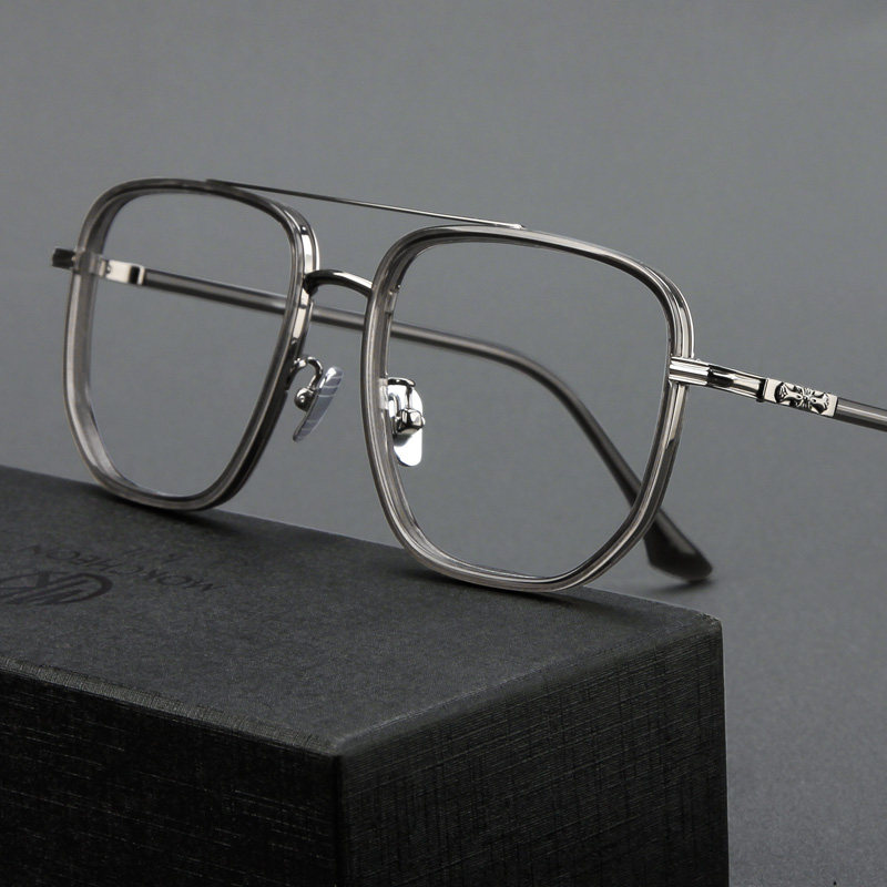 帕莎新款眼镜框男复古潮板材金属超轻商务半框镜架可配近视眼镜架