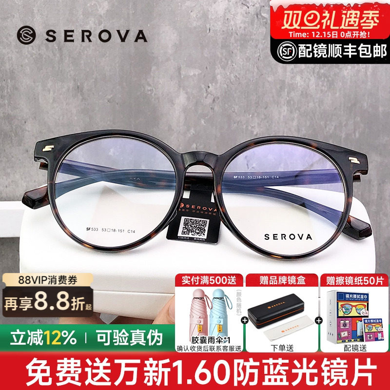 SEROVA施洛华近视眼镜框男复古圆框玳瑁色配女超轻学生配镜sf533