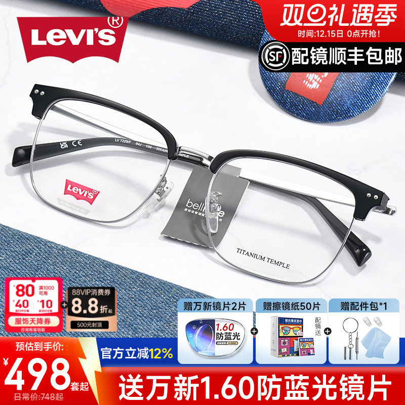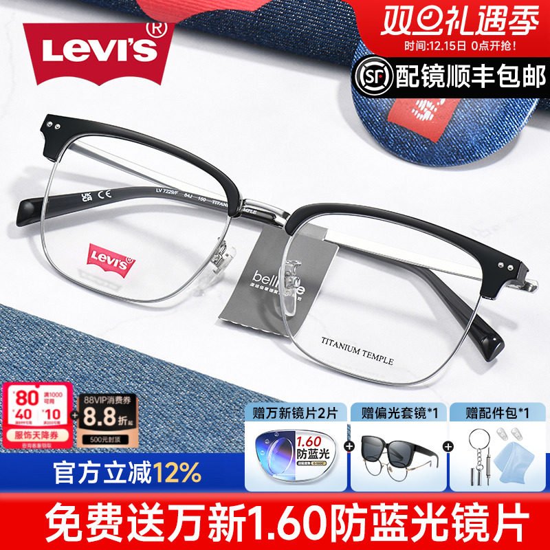 Levis李维斯近视眼镜框男复古眉线框大框显瘦超轻舒适钛架女7229