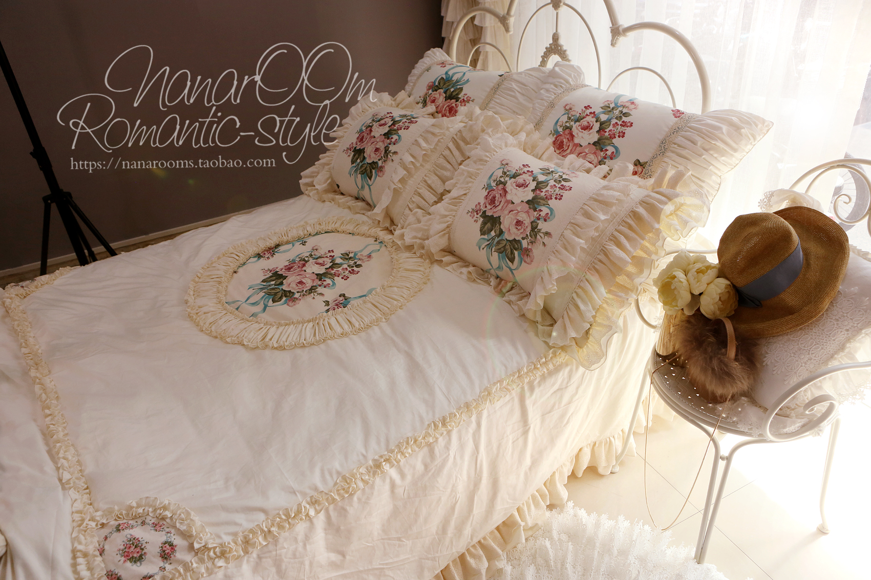 NANAROOM韩国进购米色普罗旺斯玫瑰花立体木耳公主婚庆四件套床品