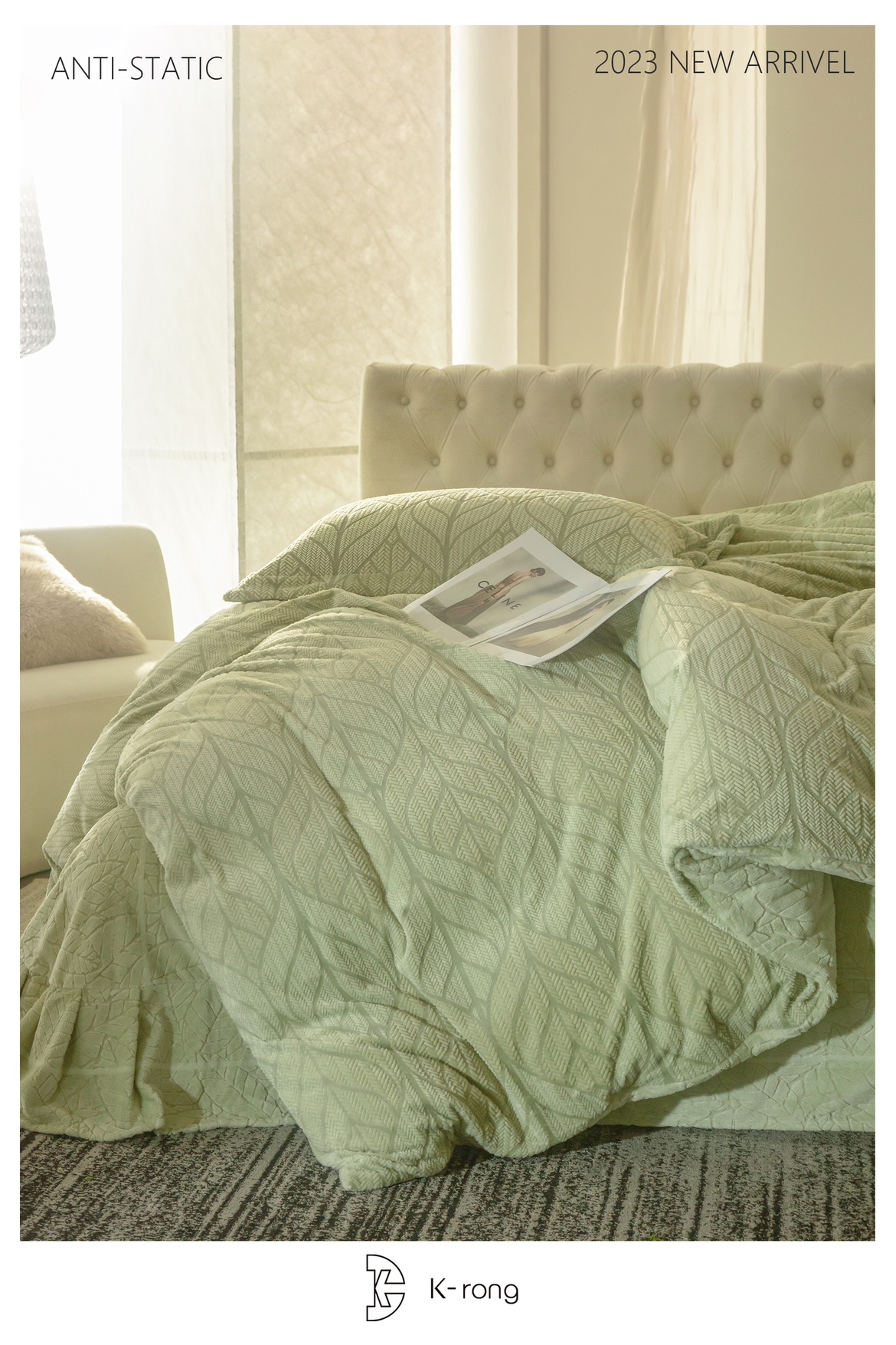 丽本冬季高端裸睡保暖进口韩国绒四件套立体雕花绒双面绒被套床品