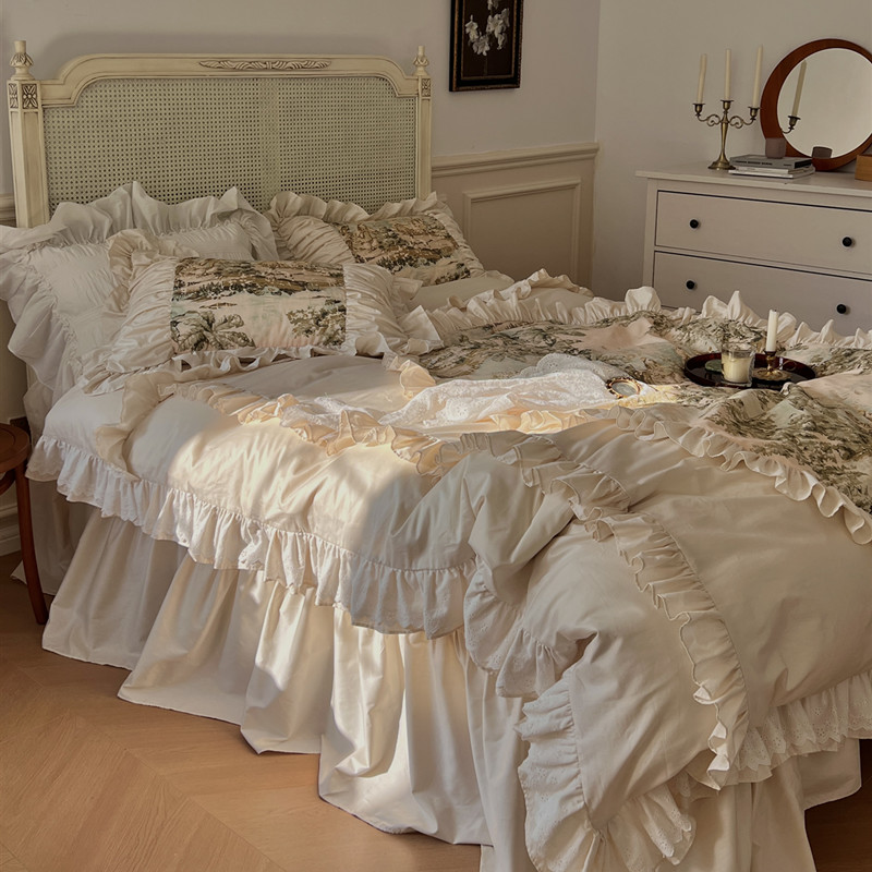 韩国公主花边法式浪漫复古纯棉床裙四件套轻奢高级感全棉被套床品