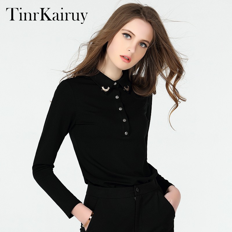 t恤女长袖2025年新款秋装polo衫衬衣领衬衫领欧货翻领打底衫内搭