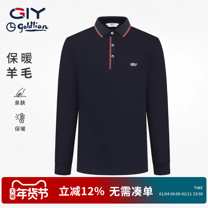 【绵羊毛】金利来GY时尚休闲长袖POLO衫男2025秋冬新款翻领打底衫