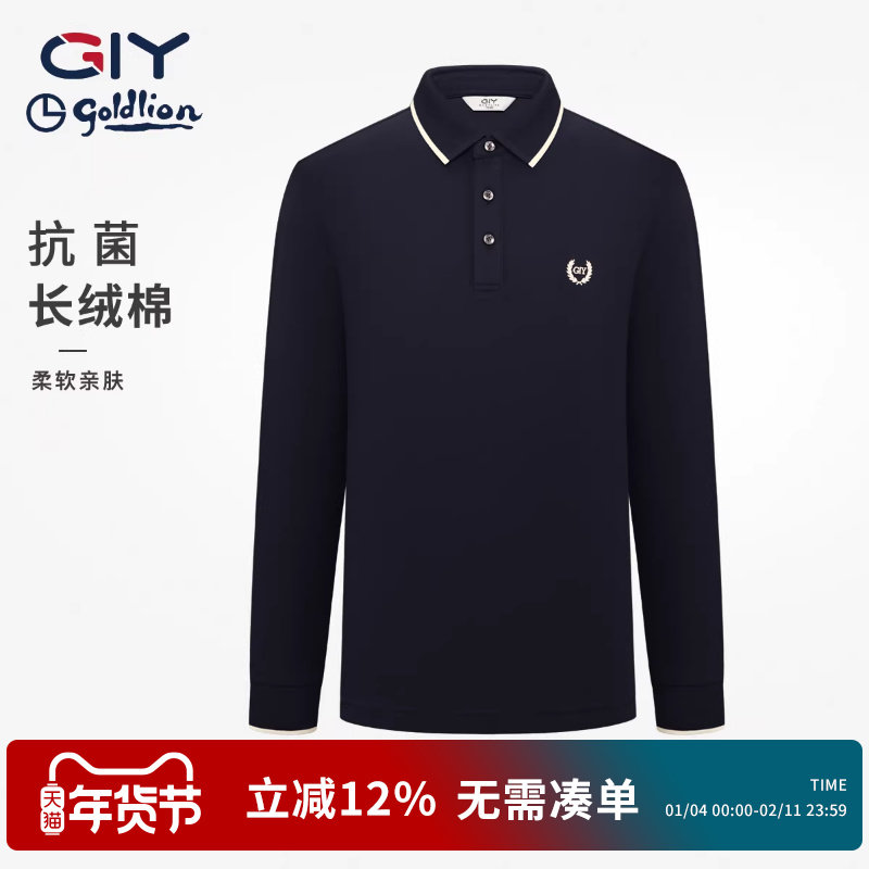 【丝光棉】金利来GY时尚休闲长袖POLO衫男2025秋冬新款翻领打底衫