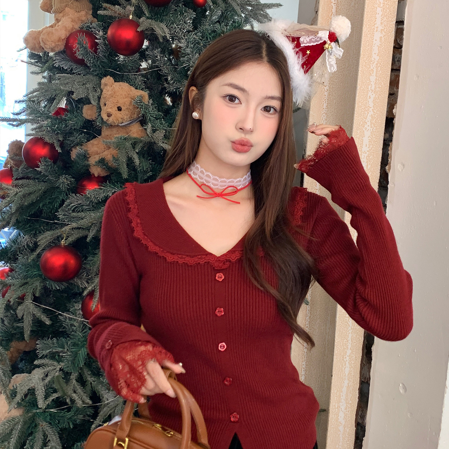 - 长袖花边衬衣女