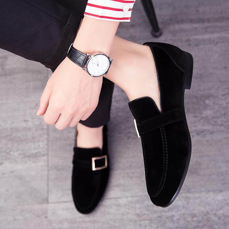 正品英伦男皮鞋韩版尖头小皮鞋休闲男鞋鞋套脚百搭内增潮高鞋子豆
