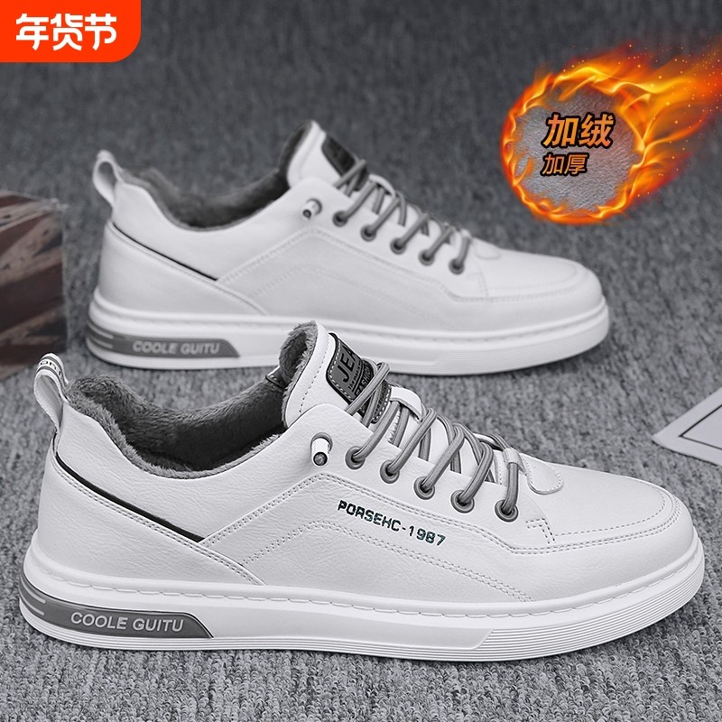男鞋冬季潮流百搭软底平板鞋男士休闲皮鞋防水防滑运动增高小白鞋