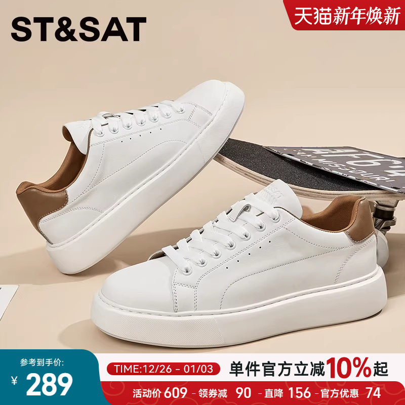星期六小白鞋男款简约百搭真皮透气休闲板鞋新款男士厚底低帮皮鞋