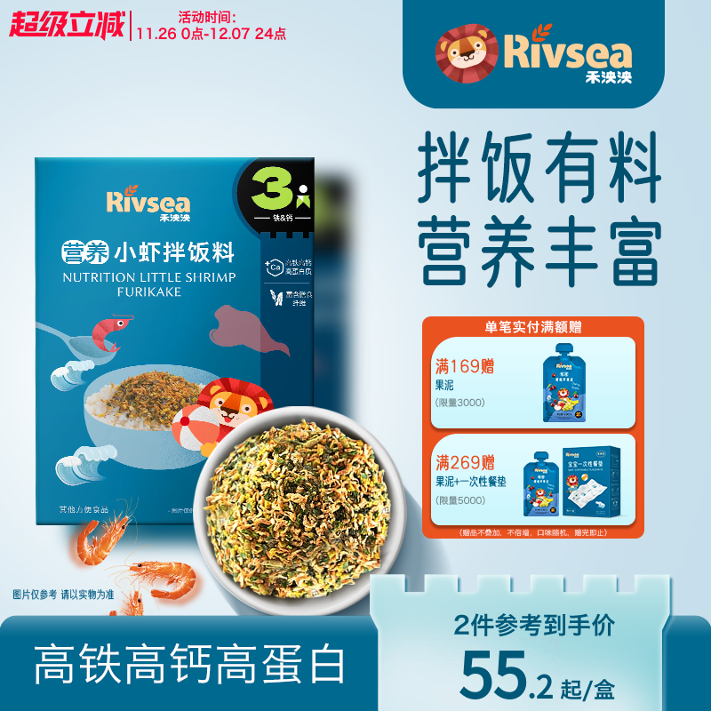 【2件9折】禾泱泱小虾三文鱼调味品拌饭料无添加食用盐宝宝添加料