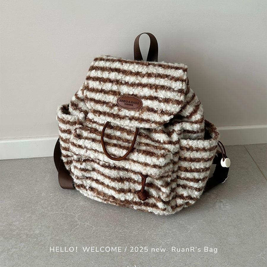软软的包 羊羔毛双肩包 韩版可爱条纹大容量双肩包背包女休闲百搭