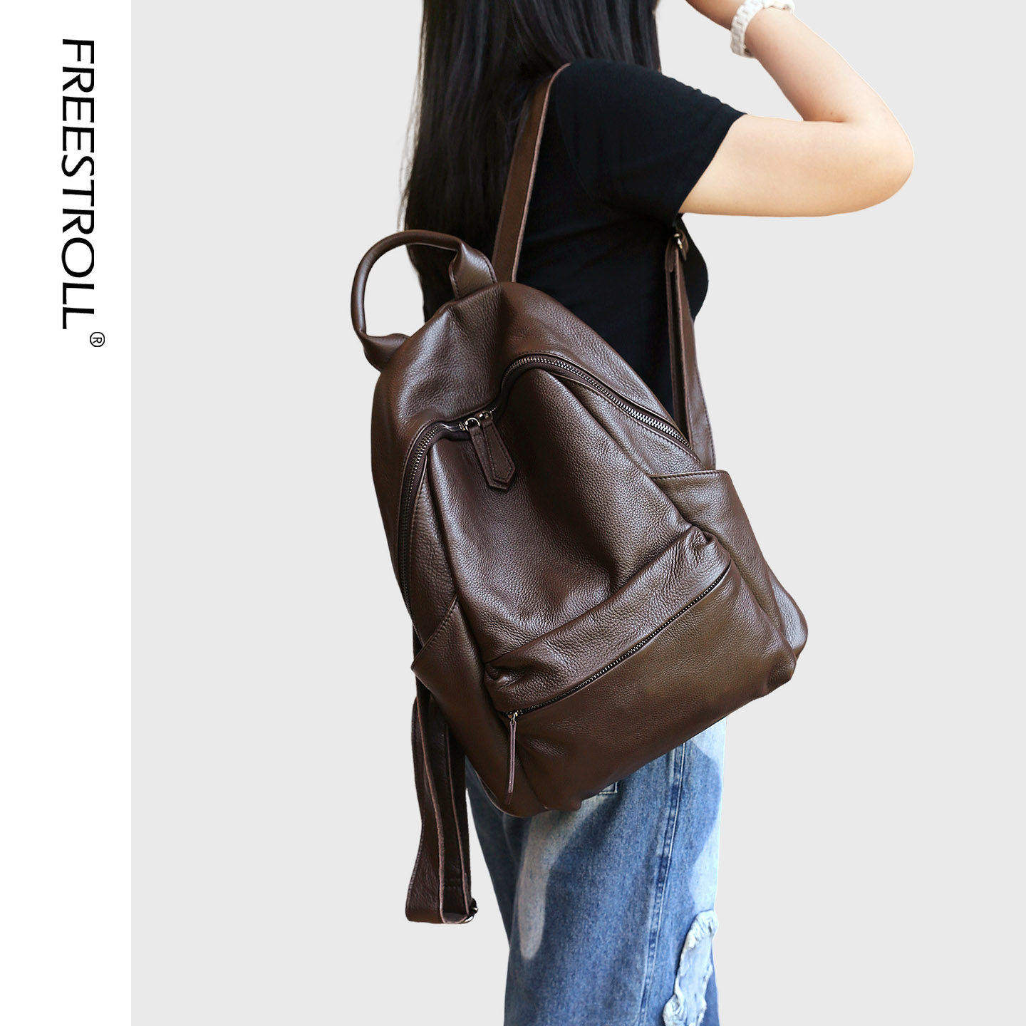 - 双肩包 女 真皮 黑色