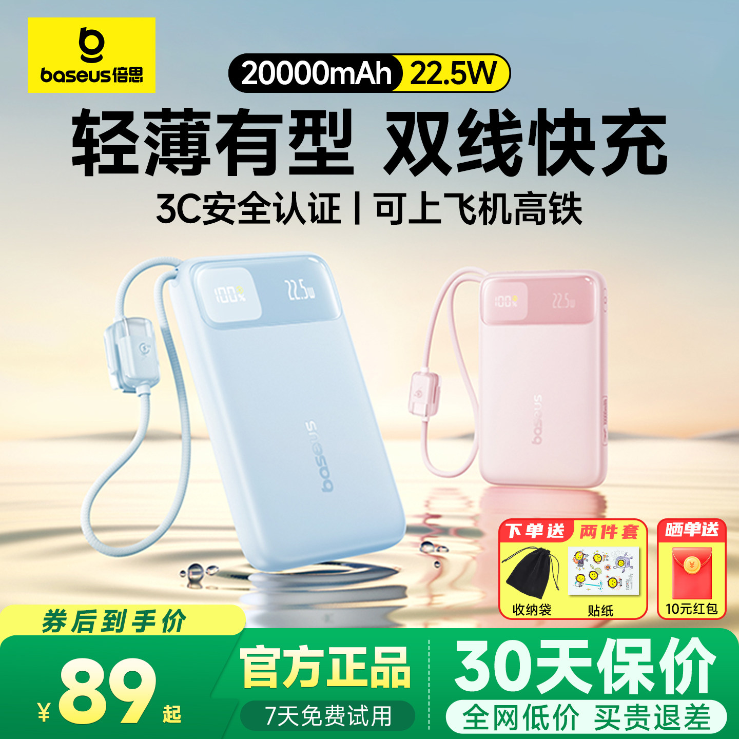 【充电宝3c认证可上飞机】倍思充电宝20000毫安大容量自带线快充移动电源2026新适用小米苹果17官方旗舰正品