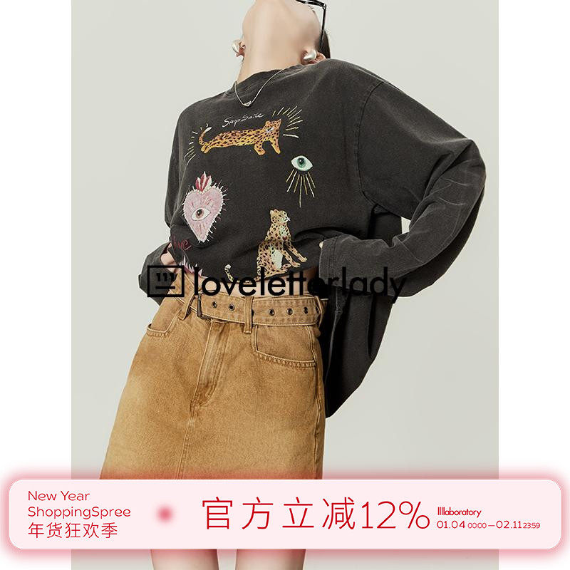 复古气质豹纹牛仔短裙女2026春季新品A字高腰洋气显瘦百搭半身裙