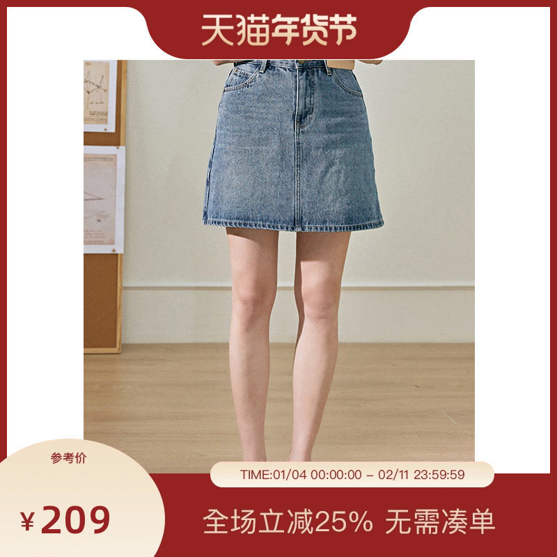 NEELLY纳俪商场同款秋冬新款复古牛仔显白高腰短裙女简约A字裙