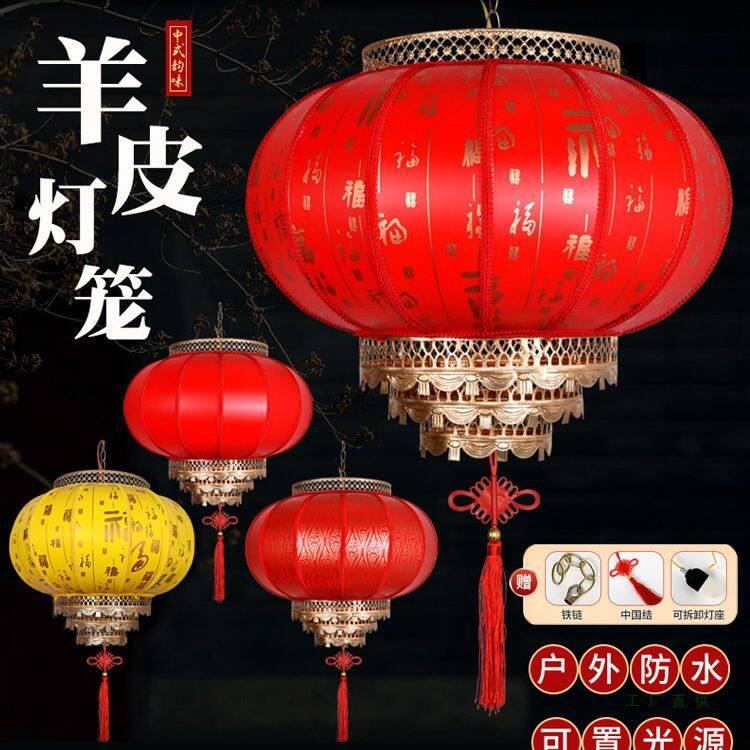 灯笼挂饰羊皮红灯笼户外定制防水防晒中式国风灯笼餐饮店宫灯批发