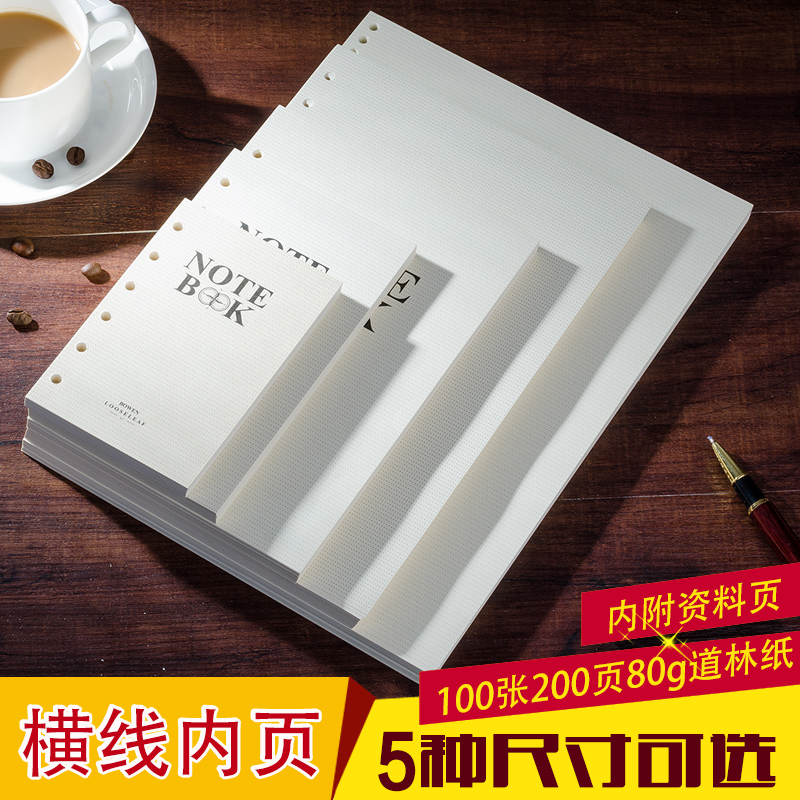 活页笔记本记事本内芯 6孔9孔日记本子替芯 A6/A5/B5米黄道林纸