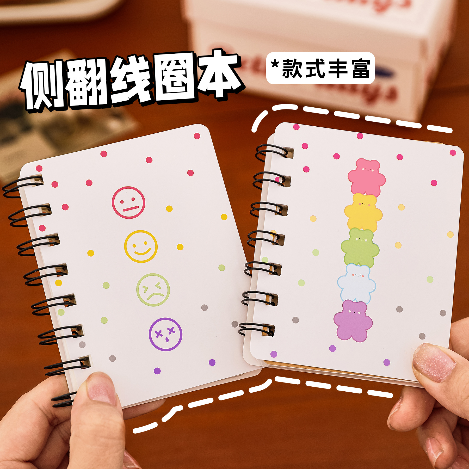 卡通泫雅小花侧翻线圈本 学生迷你便携活页笔记本记事本A7口袋本