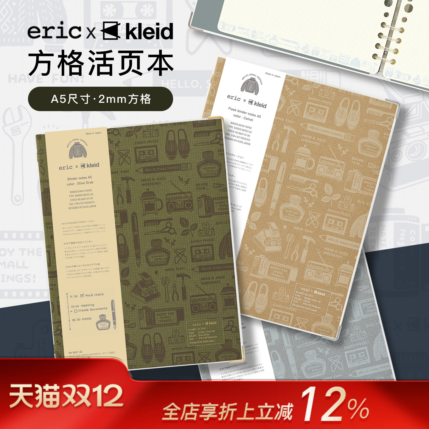 eric×kleid A5活页笔记本记事本方格内页牛皮纸色/奶油纸色绕绳锁扣创意文具内附收纳口袋插画印花封面