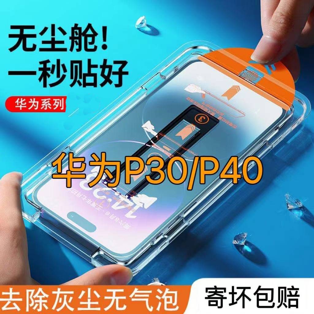 适用华为P40无尘舱钢化膜p30自动吸附mate50E贴膜神器mate30防指纹nova7SE除尘手机膜nova11防爆玻璃荣耀50se