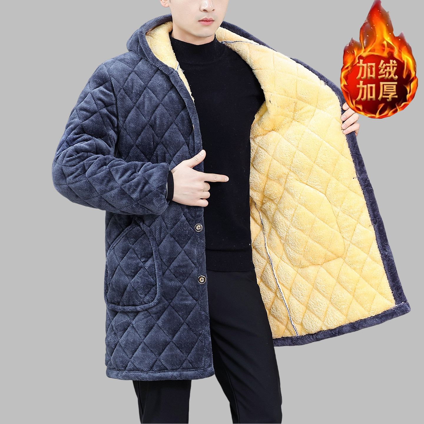 中青年加绒棉衣棉袄新款冬季加厚男士保暖省服罩衣男装中长款棉服