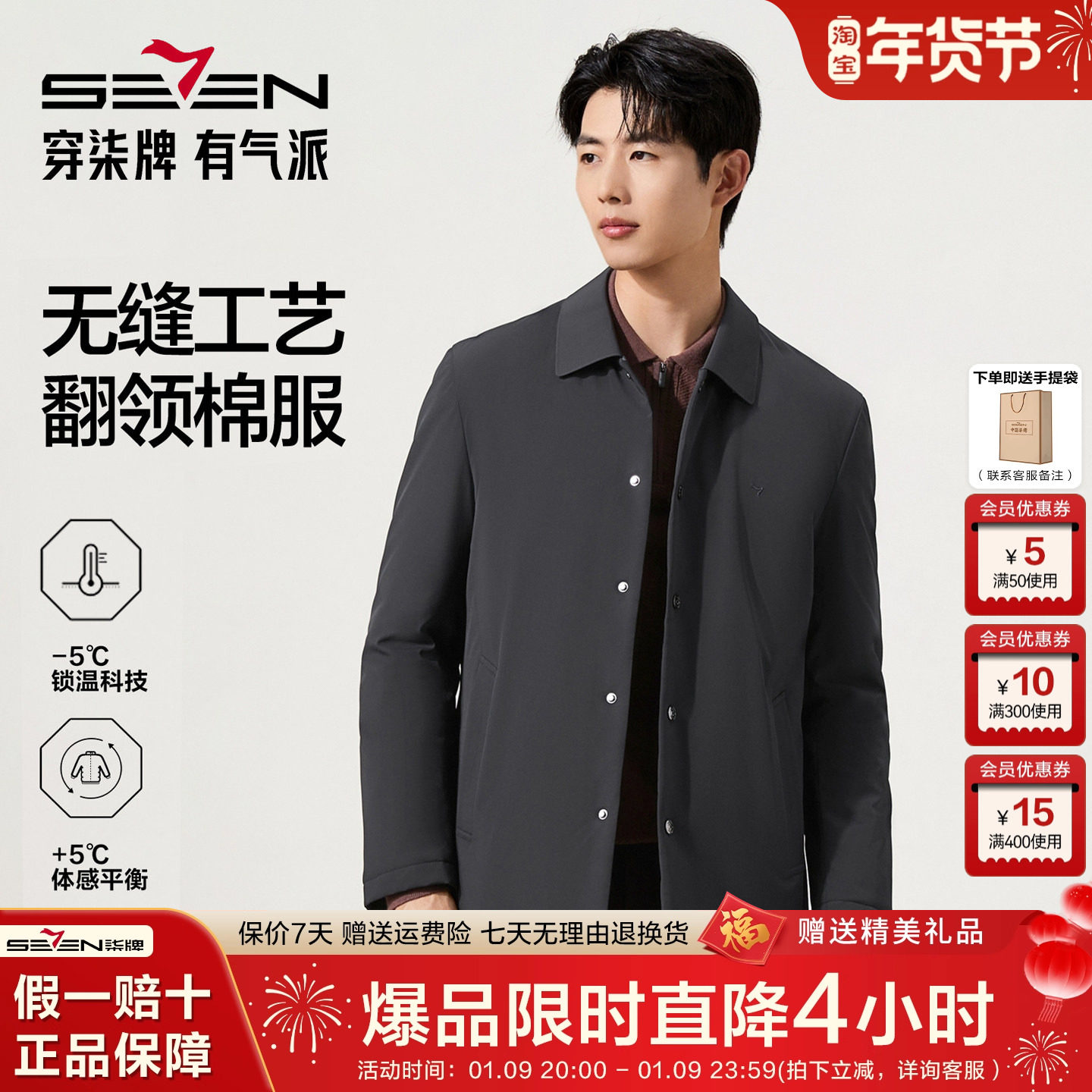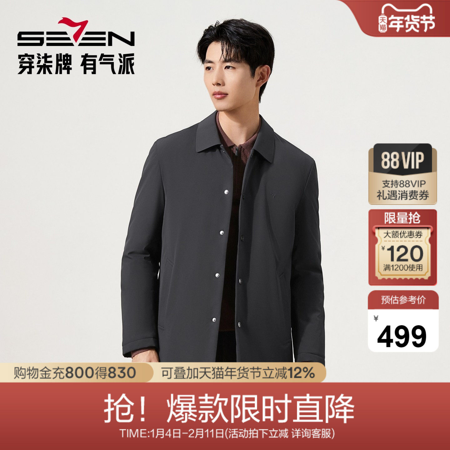 【无缝工艺】柒牌棉衣秋冬中长款时尚休闲中青年冬季保暖外套男装