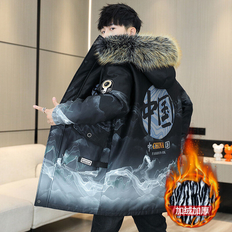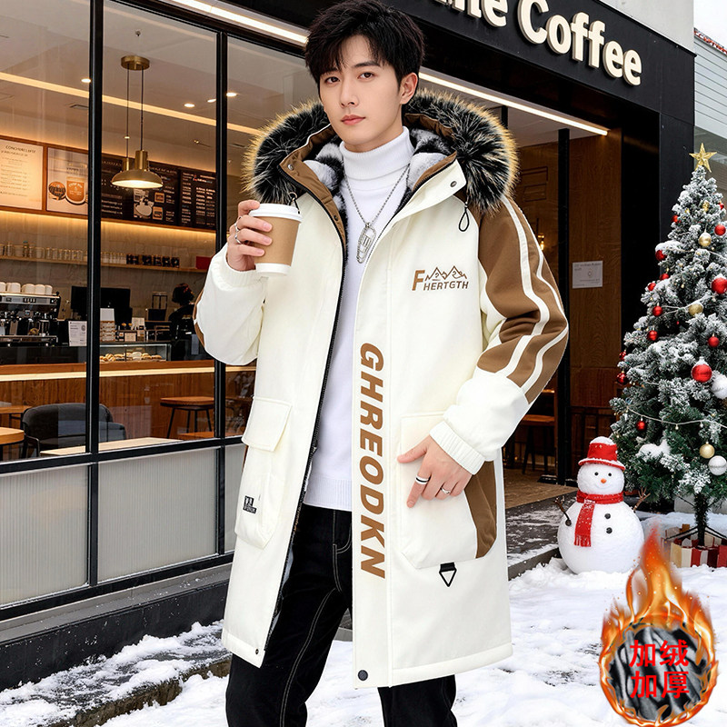 品牌特卖青年中长款羽绒服男冬季潮流加厚棉衣棉袄冬装连帽外套男