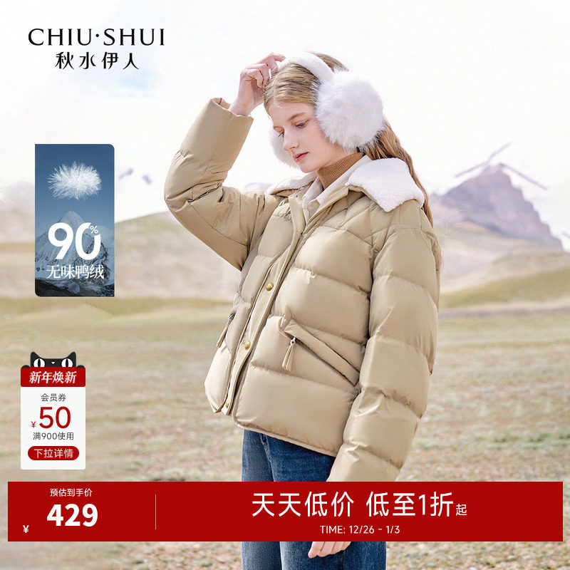 秋水伊人时尚翻领羽绒服2025年冬季新款女装可拆毛领宽松短款外套