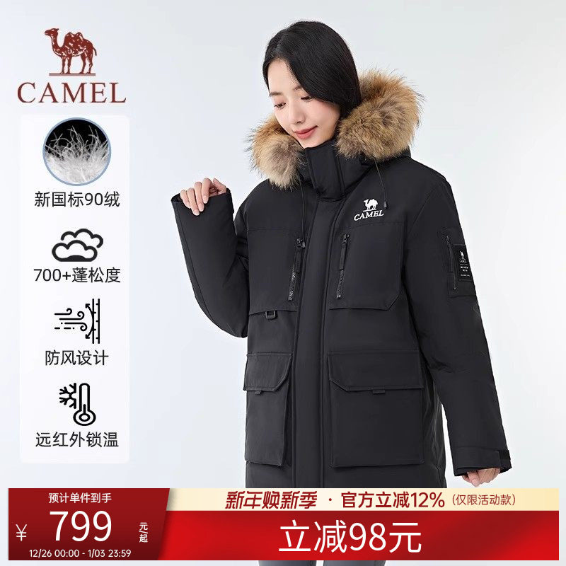 骆驼火焰羽绒服2.0女装2025防寒中长款加厚保暖毛领工装外套