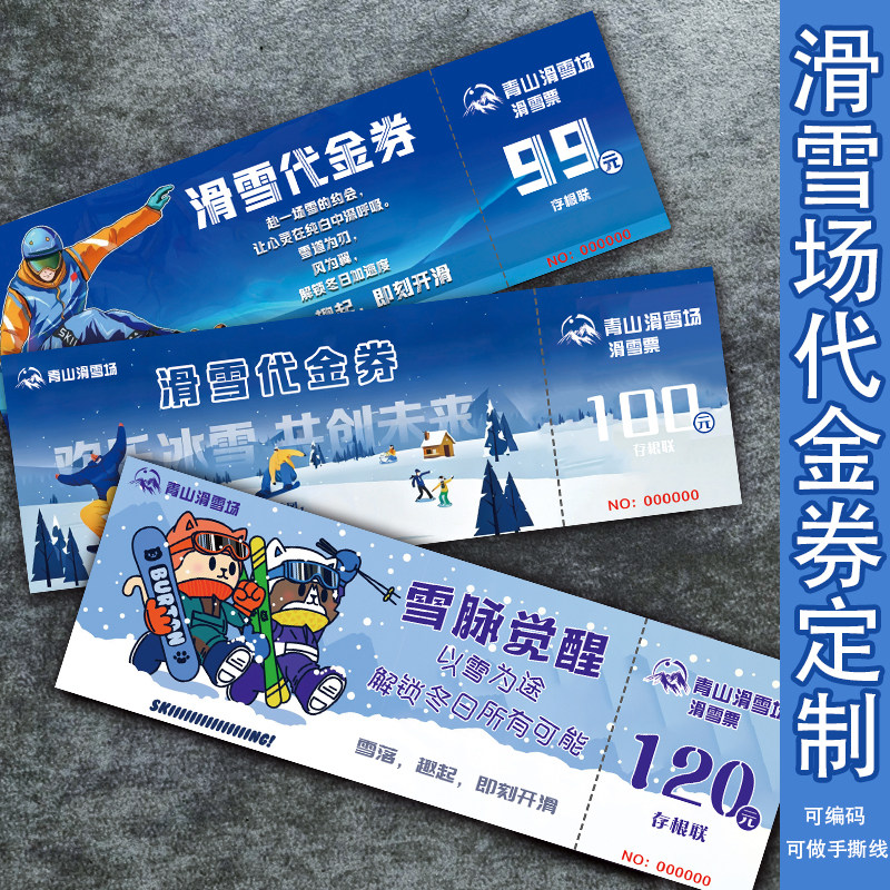 滑雪场代金券定制景区门票优惠券免费设计冬季冰雪项目抵扣券定做