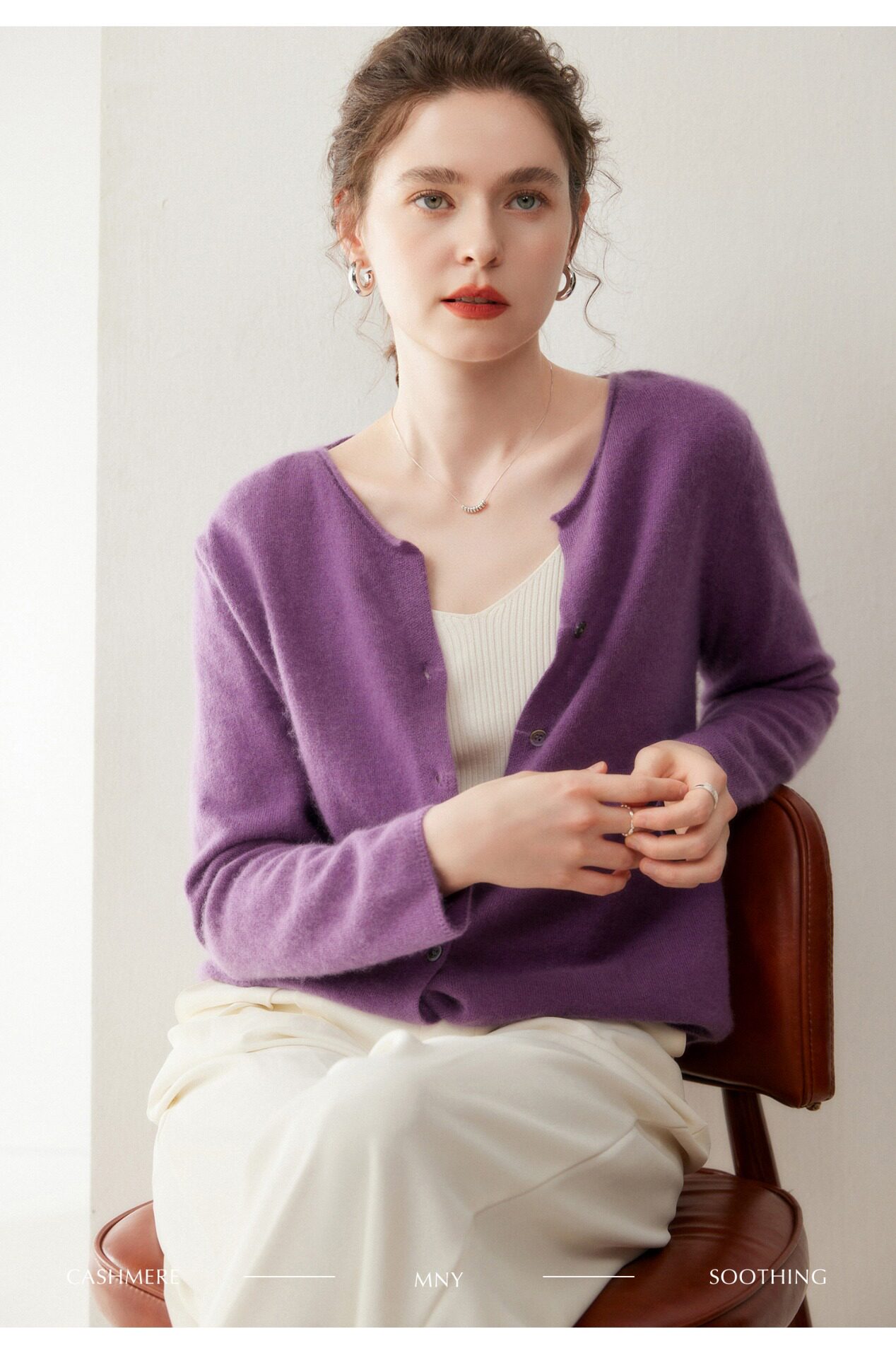 软糯山羊绒针织开衫女2025秋季新款圆领毛衣外套爱心纽扣羊毛衣