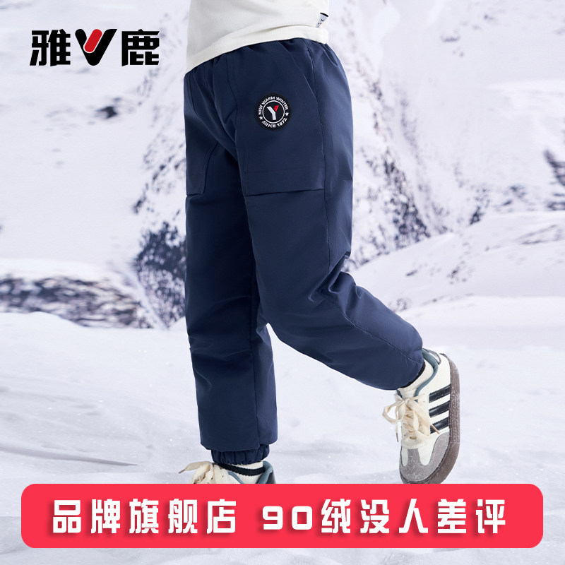 雅鹿儿童羽绒裤男童女童加厚宝宝外穿长裤小童中大童冬季保暖裤子