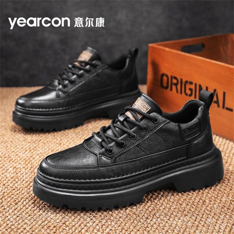 意尔康工装鞋男款2026新款秋季休闲皮鞋男士厚底板鞋增高马丁男鞋