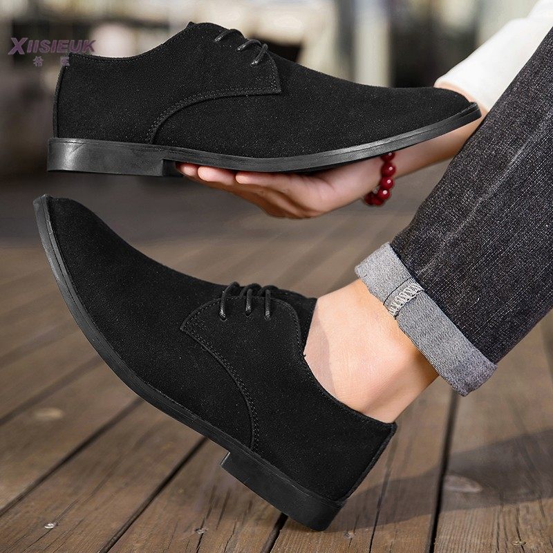 2025新款男士皮鞋英伦风复古休闲鞋尖头低帮鞋商务磨砂皮马丁男鞋