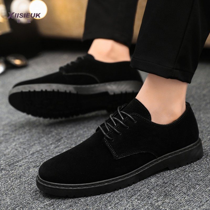 皮鞋男款韩版潮流休闲年轻人百搭黑色磨砂反绒皮低帮马丁男鞋单鞋