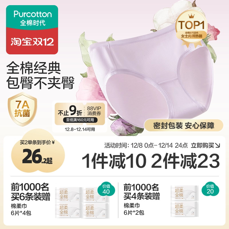 全棉时代内裤女士纯棉中腰女生内裤三角裤短裤新款不夹臀抗菌内裤