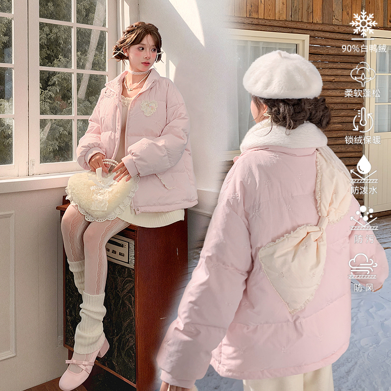 上新限时88折森女部落甜美蝴蝶结设计感90白鸭绒三防宽松羽绒服女